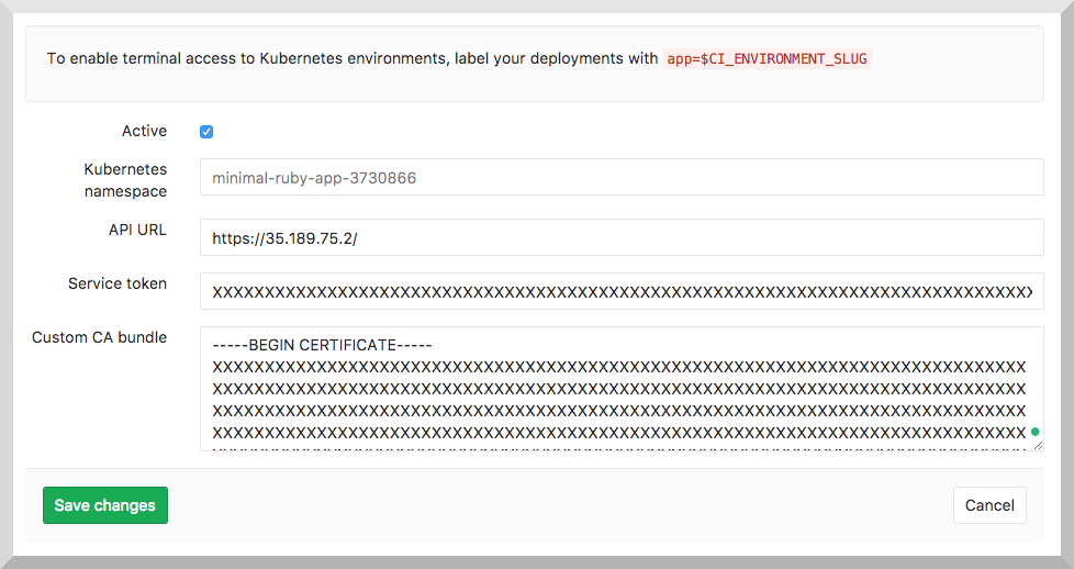 need for GitLab integration: ca.crt and token.