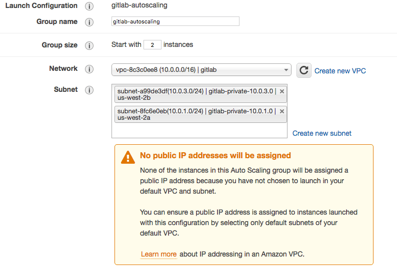- gitlab-private-10.0.1.0 - us-west-2a - 10.0.1.0